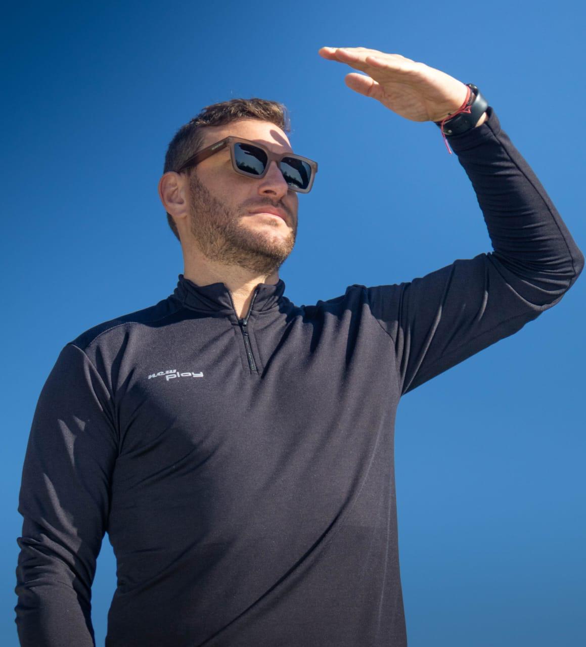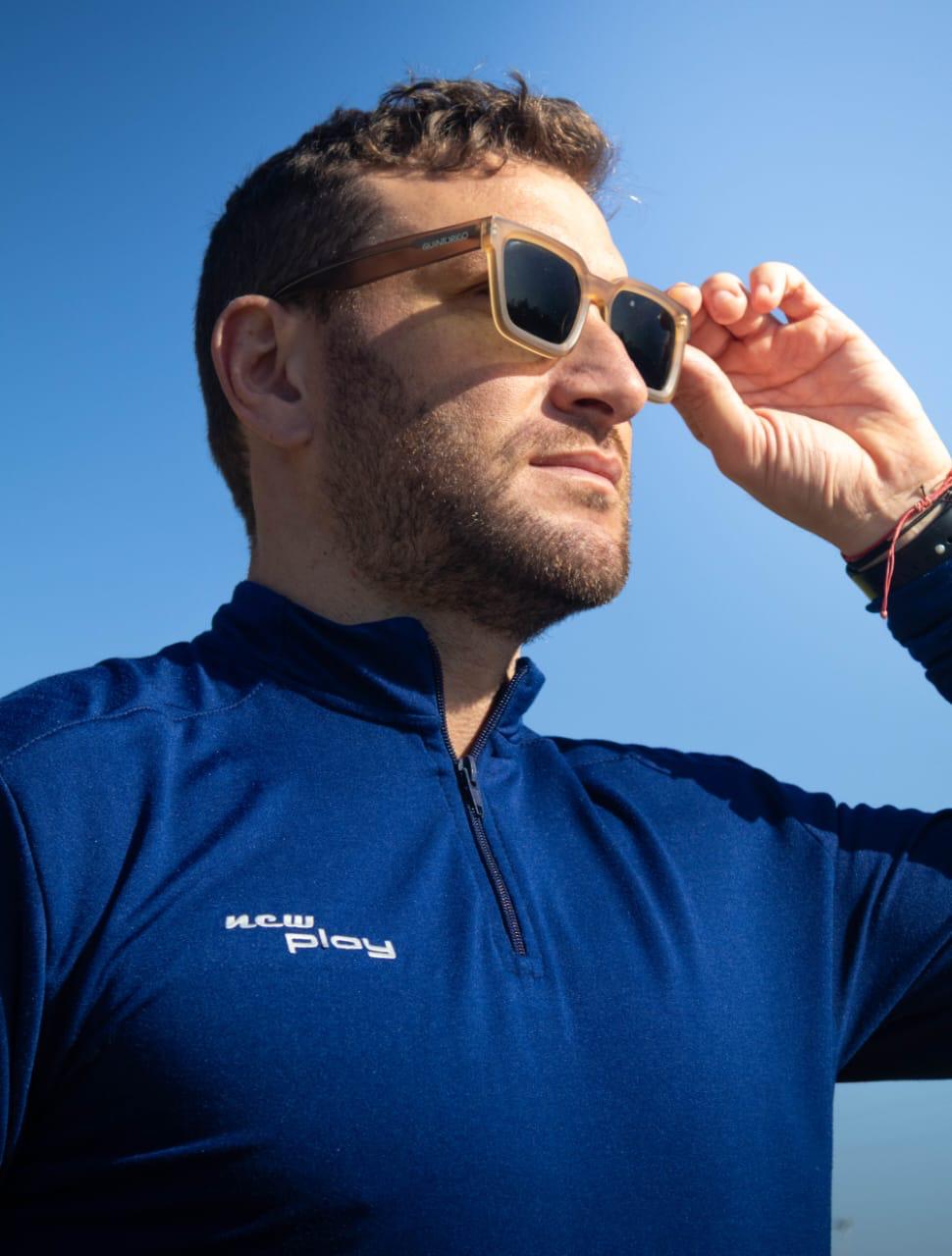 Buzo cuello medio alto con cierre laicra micro frisado, con estampada