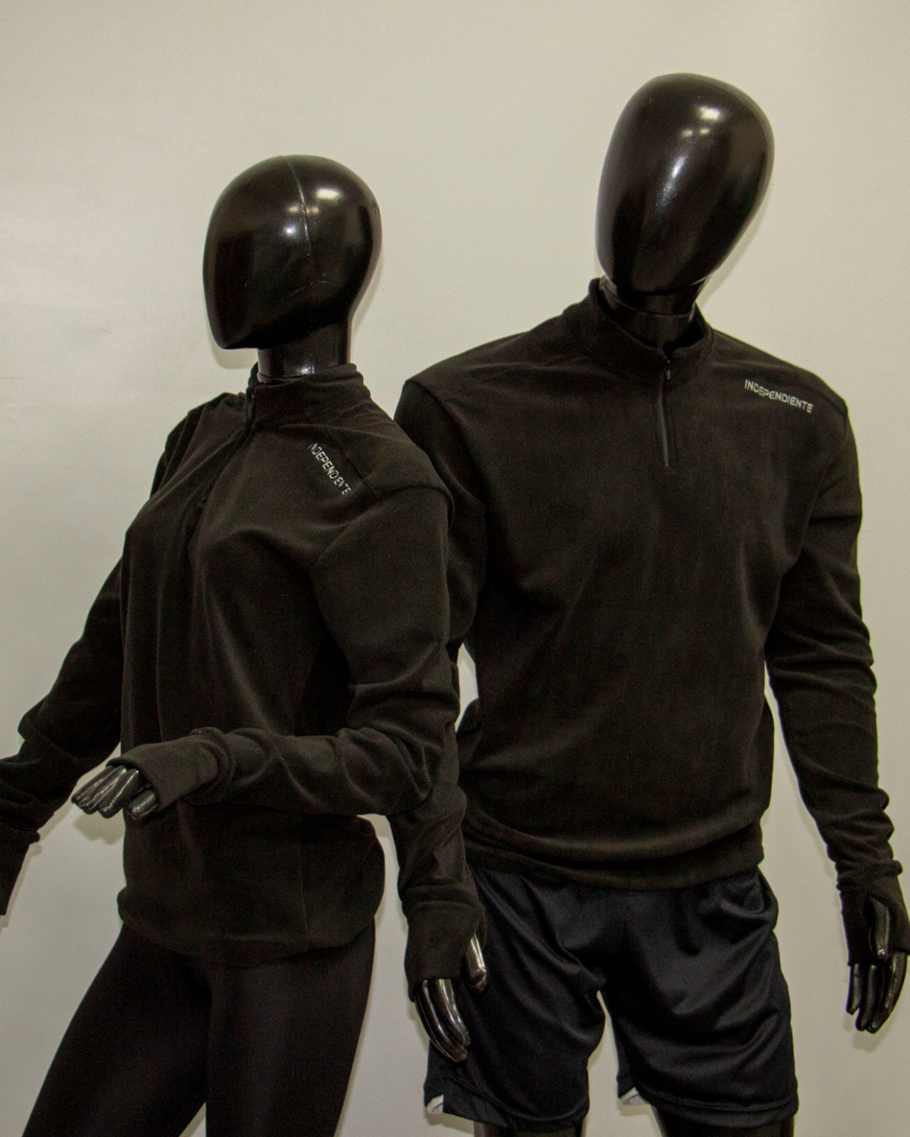 Sé el primero en valorar “Buzos cuello medio alto con cierre y dedal en los puños, tela micro polar negro con bordado”
