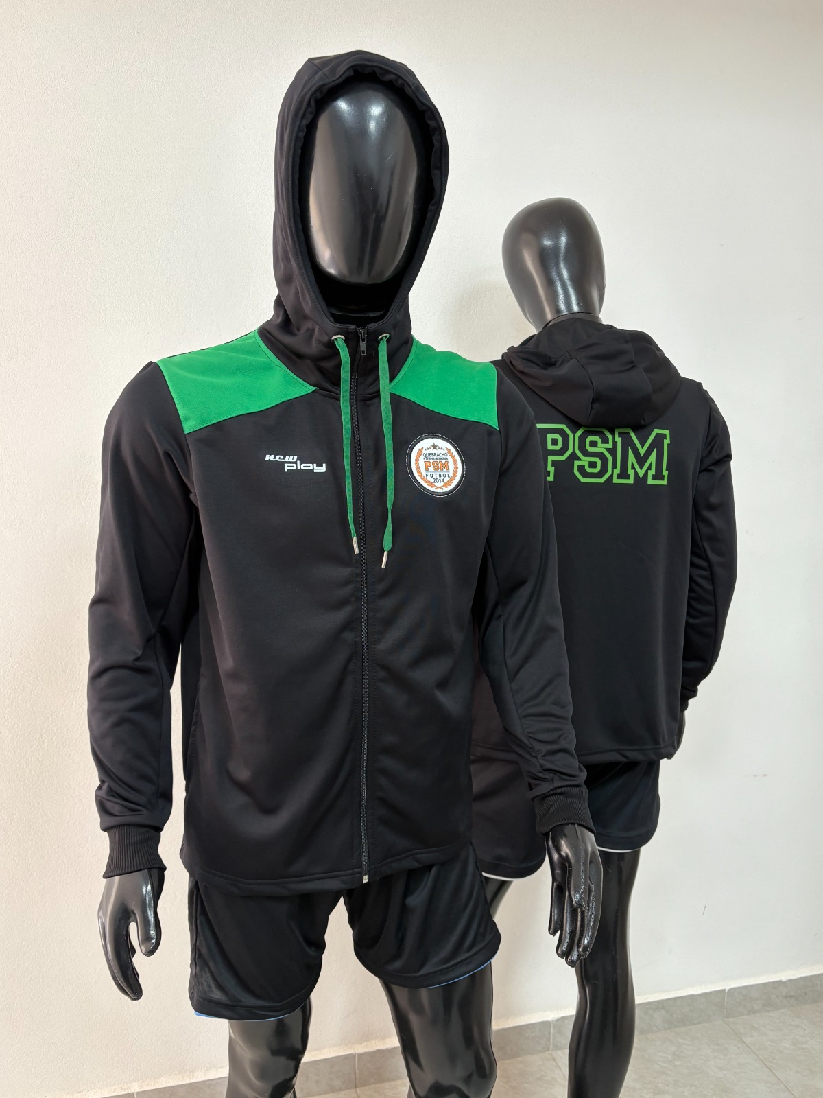 Sé el primero en valorar “Camperas deportivo frisado con recorte, cuello alto con capucha, escudo bordado y estampa en DTF en la espalda”